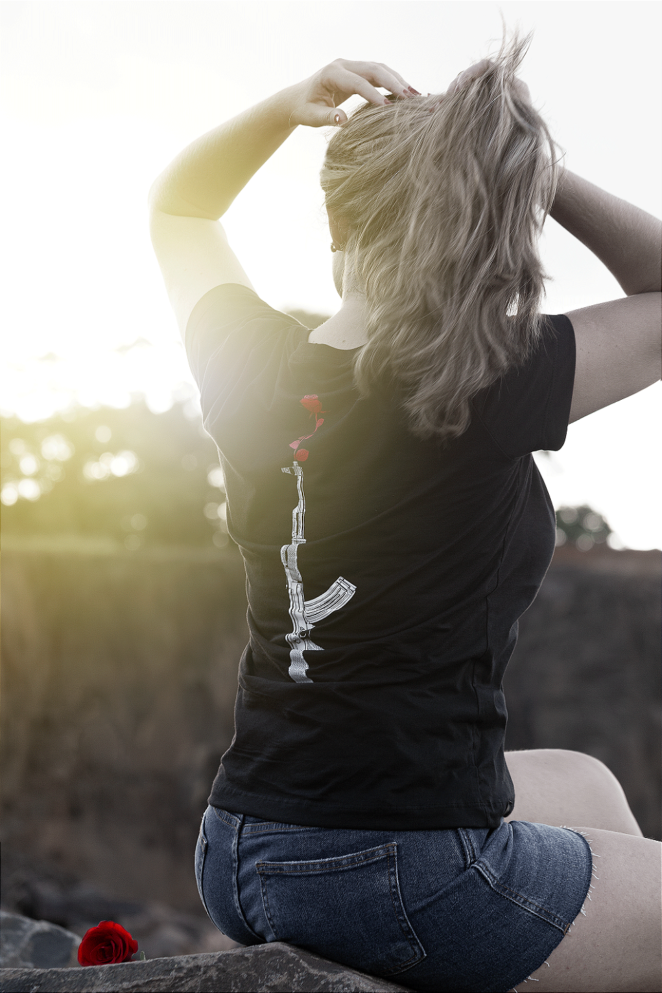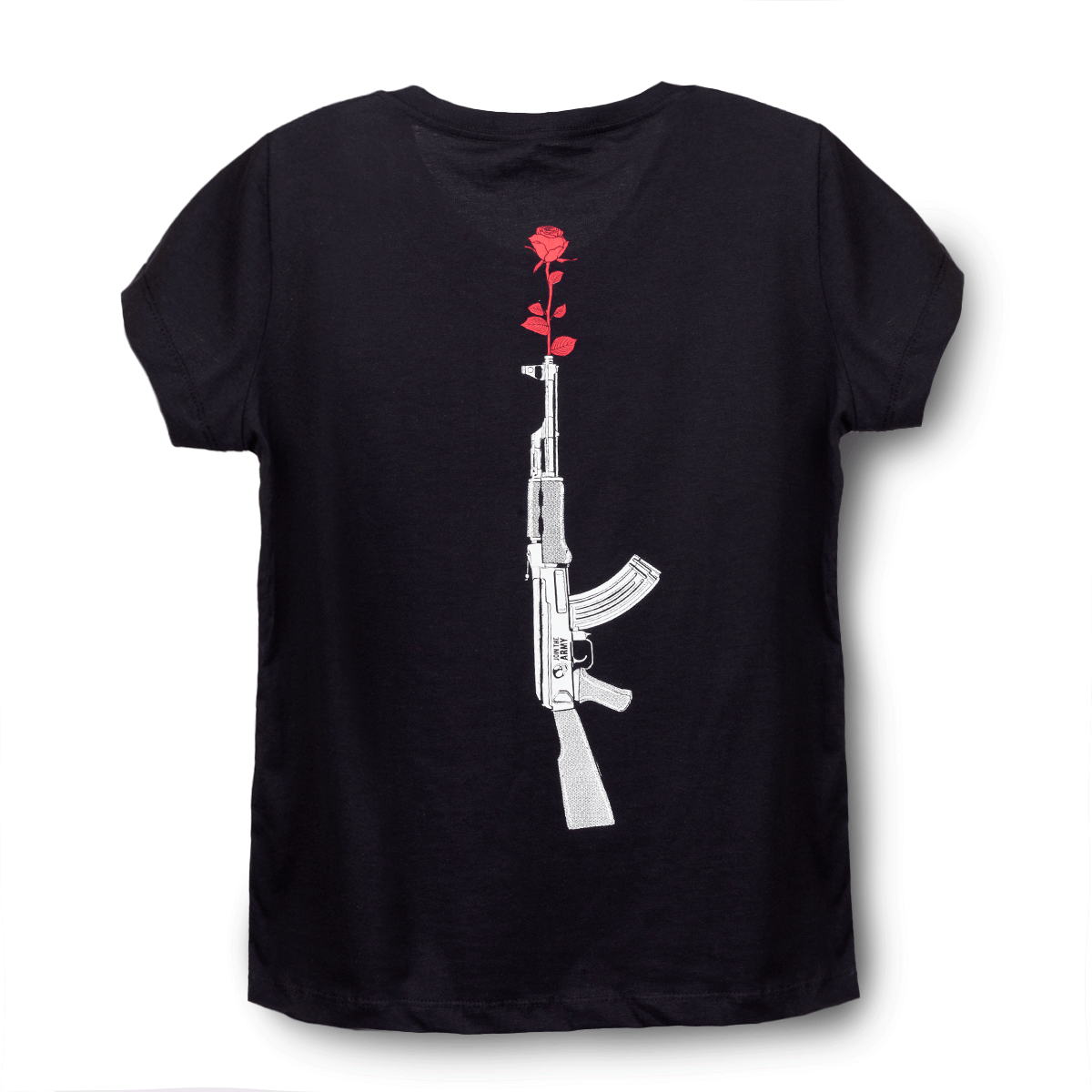 Camiseta Feminina Steve & Charlie Kalash & Rose Preta. A camiseta possui um toque macio, uma estampa aplicada em serigrafia nas costas e alto-relevo no parte superior frontal, mangas curtas, decote redondo e barra reta. Feita no modelo baby look em malha 100% algodão 30/1 fio penteado e cor preta.