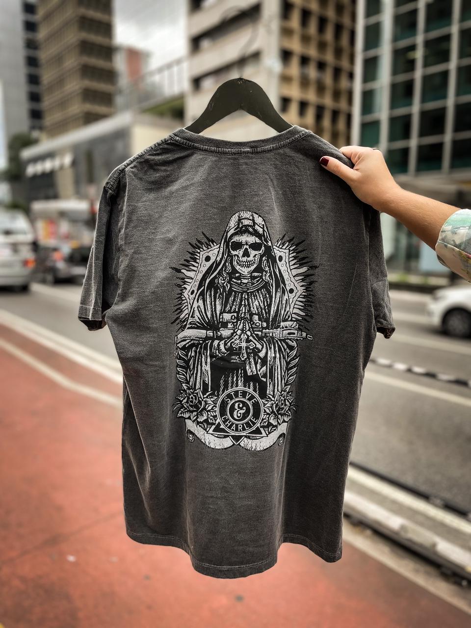 A camiseta Steve & Charlie Santa Muerte é um produto de qualidade, confortável para você que deseja expressar uma filosofia e não se priva de experiências que levem ao limite.